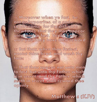 16 Moreover when ye fast, be not, as the hypocrites, of a sad countenance (a person's face or facial expression.): for they disfigure their faces, that they may appear unto men to fast. Verily I say unto you, They have their reward.